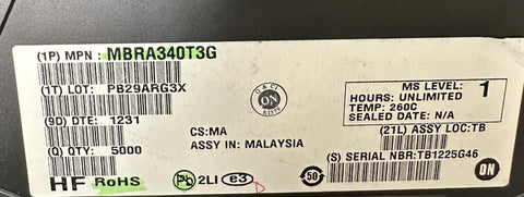 Reel of 5000 ON Semiconductor MBRA340T3G Rectifier Diode 40V 3A 450 mV Single