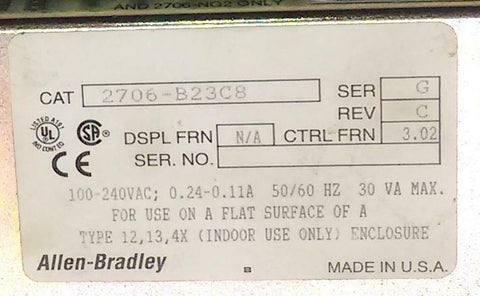 Allen Bradley 2706-B23C8 Dataliner 2-Line Message Display Ser. G Rev. C