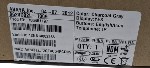 Avaya 9620L Office Display IP Phone Charcoal Gray 9620D02L-1009