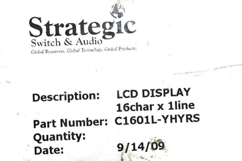 New Strategic Switch & Audio C1601L-YHYRS LCD Display 16Char X 1Line (10 Avail.)