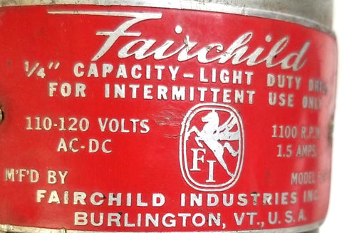 Fairchild F-247 Electric Drill 110-120V AC-DC 1100RPM 1.5A 1/4" Capacity W/ Case