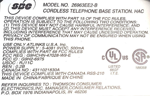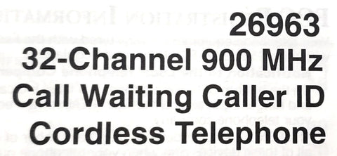 SBC 26963EE2-B Cordless Telephone 32 Channel 900MHz Call Waiting Caller ID