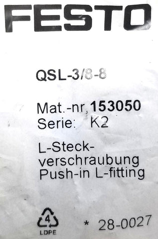 Festo QSL-3/8-8 Push To Connect Elbow Series K2 Type L (Bag of 10)