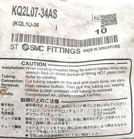 Lot of (4) SMC KQ2L07-34AS Tube Elbow Fitting Male 90°
