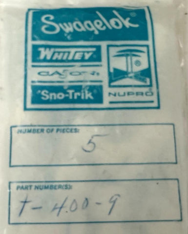 Pack of (5) Swagelok T-400-9 PTFE Tube Fitting Union Elbow 1/4" Tube OD