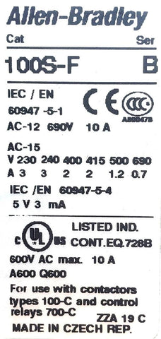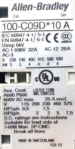 Allen-Bradley 100S-C09DJ14BC Contactor Series A Non-Reversing 9 AMP 600 VAC