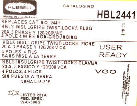 This is a listing for a Hubbell Insulgrip Twist-Lock Plug