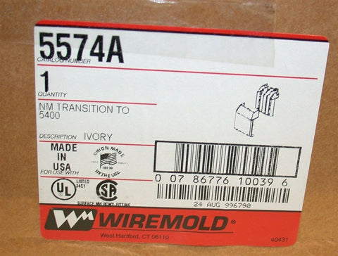 NIB Wiremold Legrand 5574A Ivory Transition Fitting 5500 to 5400 Series Raceway