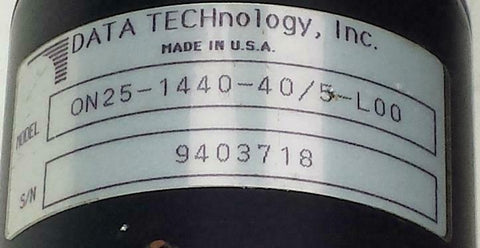 You are Purchasing a Data Technology Incremental Encoder. Model : ON25-1440-40/5-L00 This Encoder is in Great Condition and Fully Guaranteed. Shipping and handling is FREE within the Continental USA.