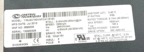 NIB New Emerson Control Techniques 115U2C100VAFCA115190 Servomotor W/Encoder