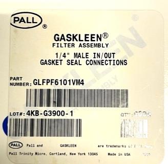 Pall Gaskleen GLFPF6101VM4 Gas Filter Assembly 1/4" Male In/Out Gasket Seals