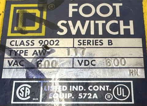 Square D 9002 AW-117 Foot Switch Ser B 600VAC 600VDC EN HN