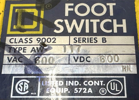 Square D 9002 AW-117 Foot Switch Ser B 600VAC 600VDC EN HN