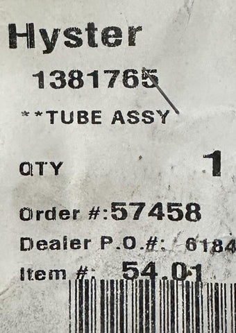 Hyster 1381765 Hydraulic Line Tube Assembly For Forklifts