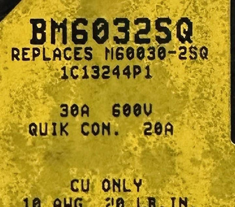Bussmann BM6032SQ Fuse Block 30A 600V 2-Pole w/ (2) Fuses