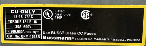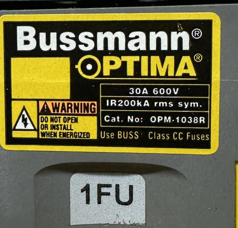 Bussmann OPM-1038R Optima Fuse Holder 3‑Pole 600 V 30 A Class CC
