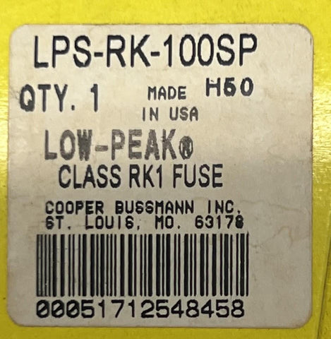 Cooper Bussmann LPS-RK-100SP Low-Peak Dual-Element Time-Delay Fuse 100 A 600 V