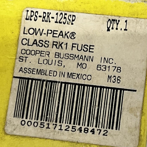 Cooper Bussmann LPS-RK-125SP Low-Peak Dual-Element Time-Delay Fuse 125 A 600 V