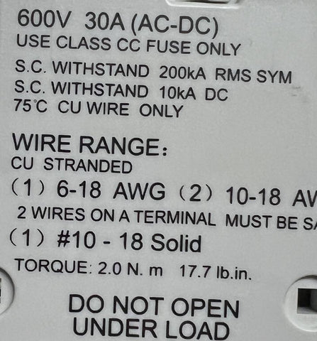 Lot of (2) Marathon 6SC30AI C Fuse Holder 30 A 600 V Class CC