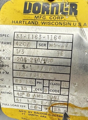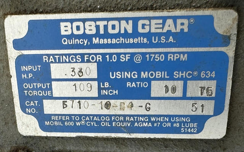 Baldor 33-1163-1164 Gear Motor 1/3 HP 10:1 Ratio 208-230/460V 3 Ph Boston Gear