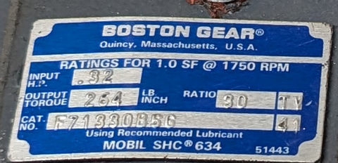 Boston Gear F71330В56 Speed Reducer 30:1 Ratio 0.32 HP 264 Output Torque 1750RPM