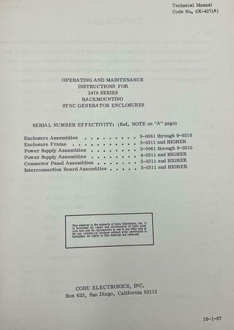 Cohu 2470 Series Rackmounting Sync Generator Enclosures Instruction Manual