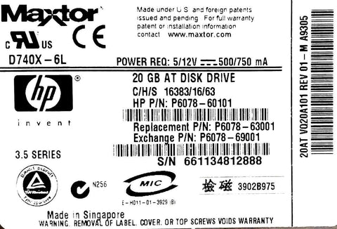 Maxtor D740X-6L 20GB Disk Hard Drive 3.5 Ser 910199R BCM FRU NTAB9947-R
