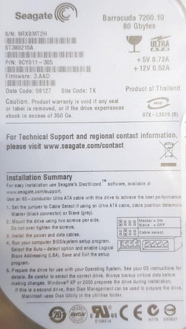 Seagate 9CY011-305 Hard Drive Cache 80GB Barracuda-7200.10 5-12V 0.52-0.72A