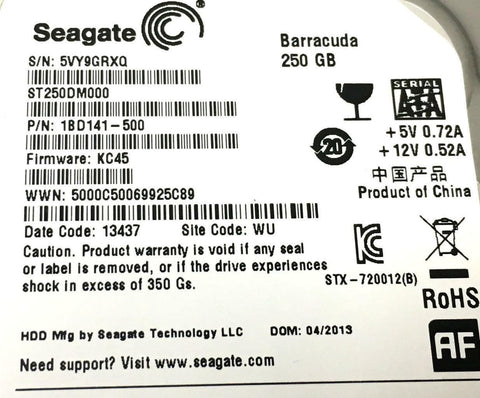 SEAGATE BARRACUDA 18D141-500 ST250DM000 INTERNAL HARD DRIVE 250 GB
