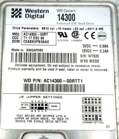 Western Digital AC14300-00RTT1 4.3GB IDE 3.5 Hard Drive