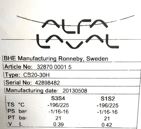 Alfa Laval CB20-30H Brazed Refrigerant Plate Heat Exchanger 32870 0001 5