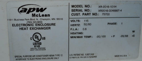 HOFFMAN XR-2016-101A PROAIR ELECTRONIC ENCLOSURE HEAT EXCHANGER