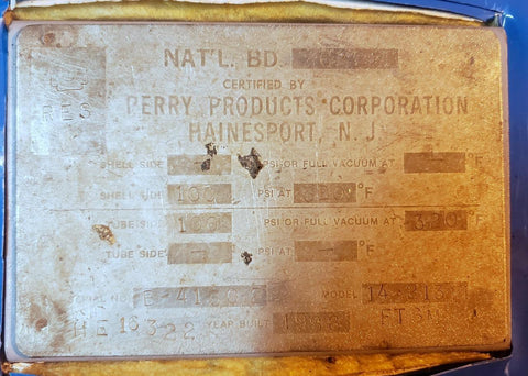 This listing is for a Perry Tube & Shell Heat Exchanger.