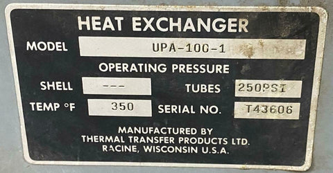Thermal Transfer Products UPA-100-1 Heat Exchanger 350°F 250 PSI