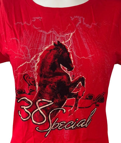Alstyle Women's 38 Special Horse Graphic Red Short Sleeve Shirt Size Large