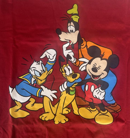 Disney Boys Mickey Mouse Donald Goofy & Pluto Red Short Sleeve Shirt Size Medium