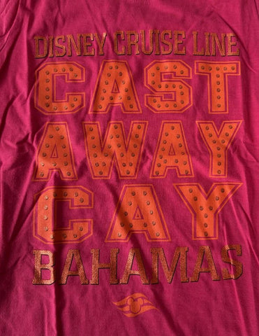 Disney Cruise Line Girls Castaway Cay Bahamas Graphic Pink Shirt Size Medium