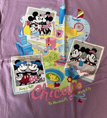 Disney Girls Mickey Mouse & Minnie Chicago Graphic Purple Shirt Size Medium
