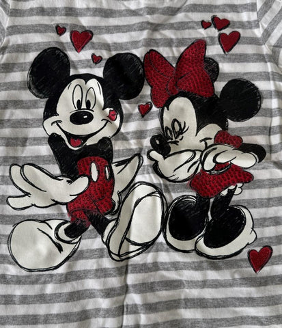 Disney Girls Minnie Mouse Kissing Mickey Mouse Graphic Striped Shirt Size Small