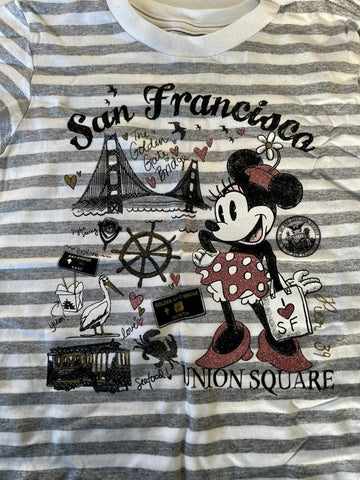 Disney Girls Minnie Mouse San Francisco Graphic Striped Gray/White Shirt Size M