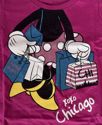 Disney Girls Minnie Mouse XOXO Chicago Purple Short Sleeve Shirt Size Medium
