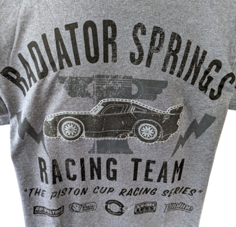 Disney Men's Cars Radiator Springs Racing Team Piston Cup Gray Shirt Size L