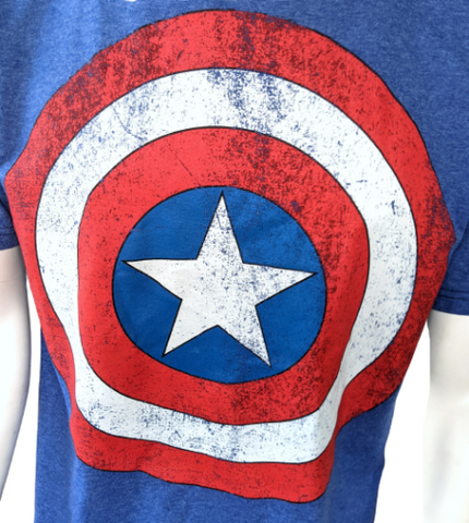 Disney Men's Marvel Captain America Shield Blue Short Sleeve Shirt Size Medium