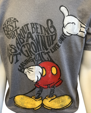 Disney Men's Mickey Mouse Not Acting Like A Grownup Gray Short Sleeve Shirt M