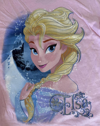 Disney Parks Girls Frozen Elsa Graphic Pink Short Sleeve Shirt Size X-Small
