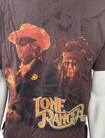 Disney Parks Men's Lone Ranger Graphic Brown Short Sleeve Shirt Size Large