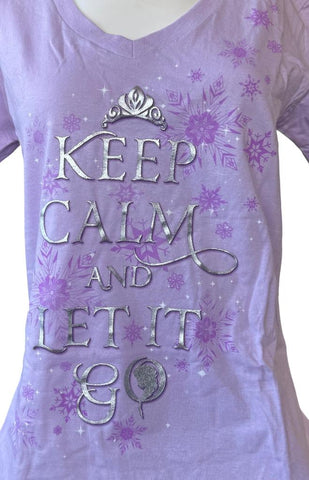 Disney Women's Frozen Elsa Keep Calm And Let It Go Purple Shirt Size Medium