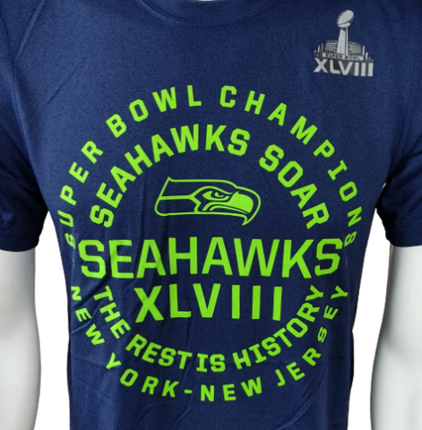 Nike Dri-Fit Men's Seattle Seahawks XLVIII Super Bowl Champions Navy Shirt