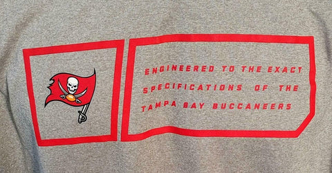 Decal: "Engineered to the exact specifications of the Tampa Bay Buccaneers"