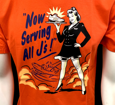 Nike Jordan Men's Now Serving All J's Orange Short Sleeve Shirt Size Medium